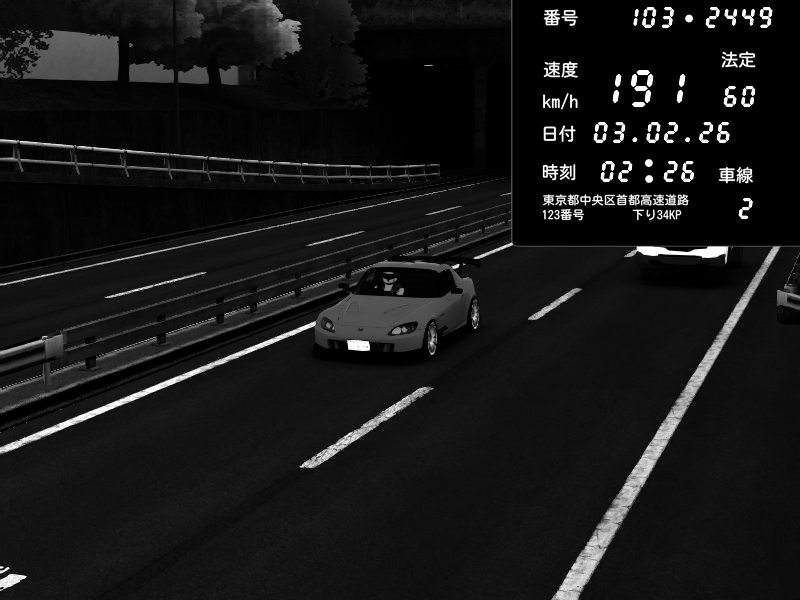 | 2026/02/03 02:26 | C1内回り 銀座 | 191 / 60 km/h | Honda S2000 (AP2 - Legendary) | CAPTURE |
