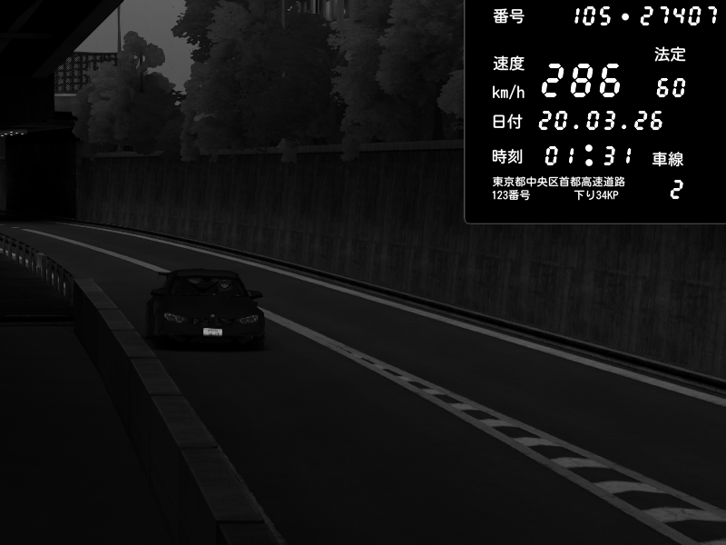 | 2026/03/20 01:31 | C1外回り 京橋 | 286 / 60 km/h | BMW M4 crash.Sp Varis Widebody | CAPTURE |