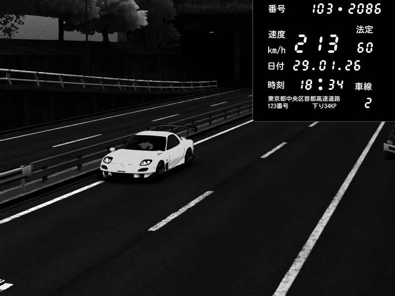 | 2026/01/29 18:34 | C1内回り 銀座 | 213 / 60 km/h | Mazda RX-7 FD3S RE Amemiya | CAPTURE |