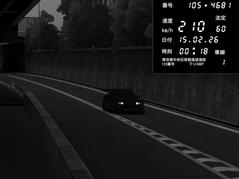 | 2026/02/15 00:19 | C1外回り 京橋 | 210 / 60 km/h | Toyota Supra MKIV Time Attack | CAPTURE |