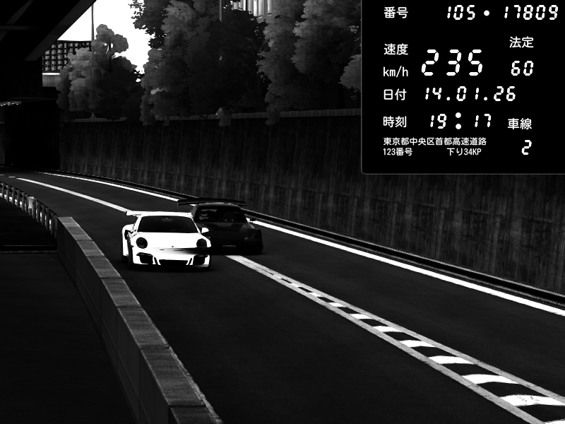 | 2026/01/14 19:17 | C1外回り 京橋 | 235 / 60 km/h | Porsche 911 GT3 RS | CAPTURE |