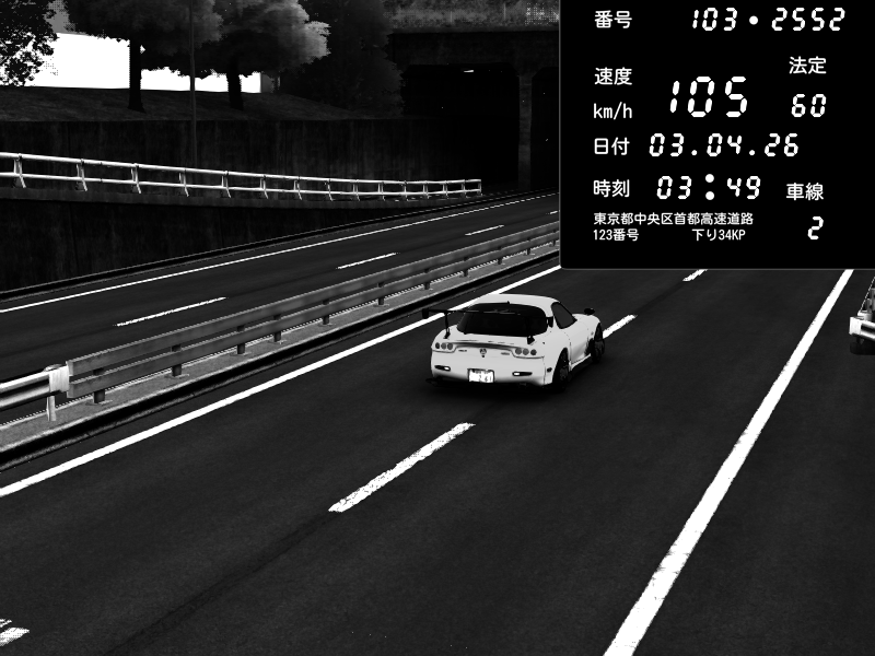 | 2026/04/03 03:49 | C1内回り 銀座 | 105 / 60 km/h | Mazda RX-7 FD3S RE Amemiya | CAPTURE |