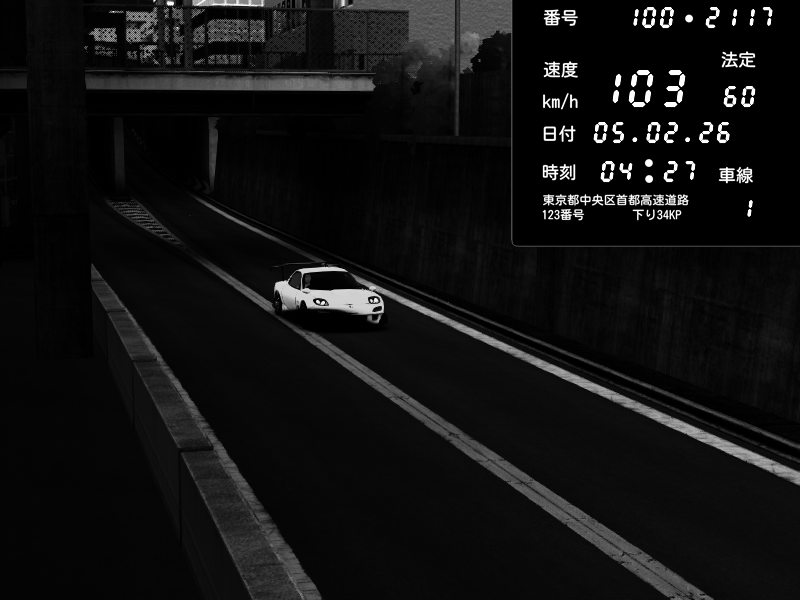 | 2026/02/05 04:27 | C1内回り 京橋 | 103 / 60 km/h | Mazda RX-7 FD3S RE Amemiya | CAPTURE |