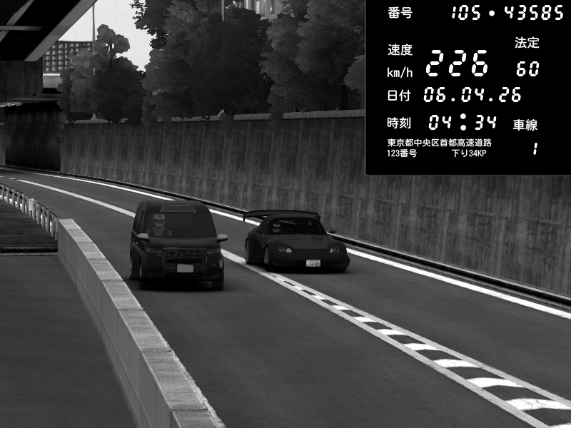| 2026/04/06 04:34 | C1外回り 京橋 | 226 / 60 km/h | Honda S2000 Turbo GT1 Amuse (AP1) | CAPTURE |