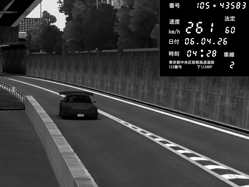 | 2026/04/06 04:29 | C1外回り 京橋 | 261 / 60 km/h | Honda S2000 Turbo GT1 Amuse (AP1) | CAPTURE |