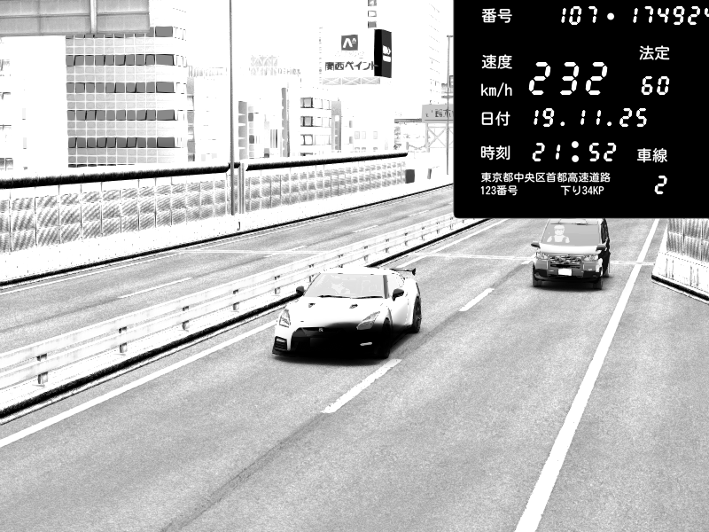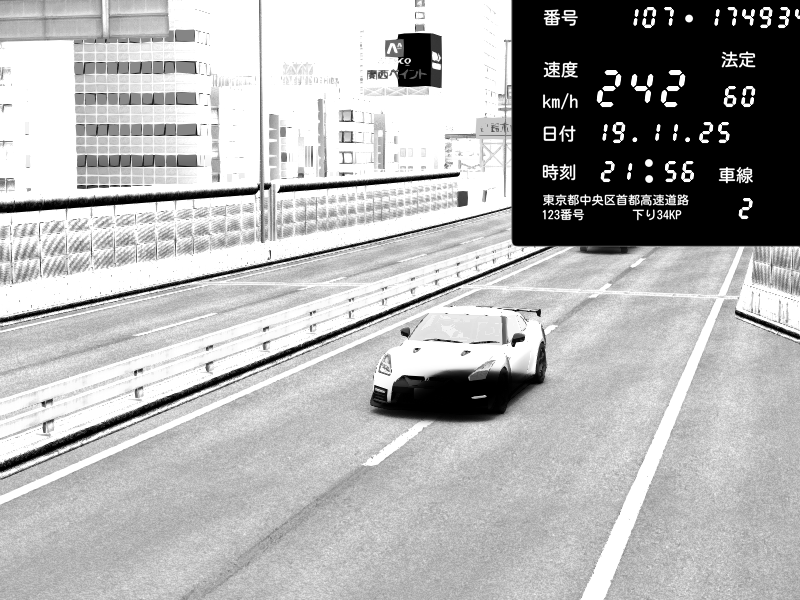 | 2025/11/19 22:03 | C1外回り 京橋 | 246 / 60 km/h | Nissan GT-R NISMO 2017 | CAPTURE |