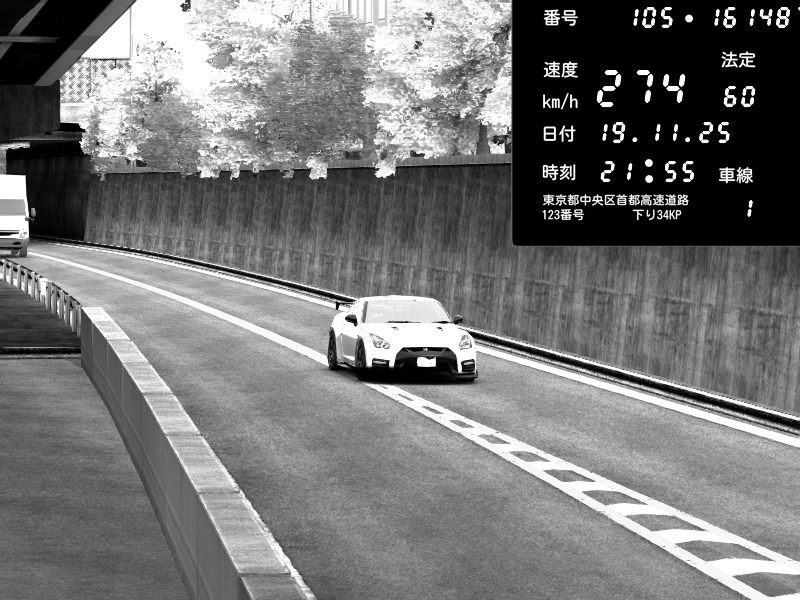 | 2025/11/19 21:55 | C1外回り 京橋 | 274 / 60 km/h | Nissan GT-R NISMO 2017 | CAPTURE |