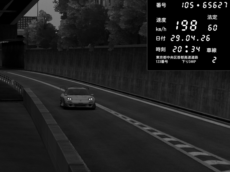 | 2026/04/29 20:34 | C1外回り 京橋 | 198 / 60 km/h | Mazda RX-7 FD3S RE Amemiya | CAPTURE |