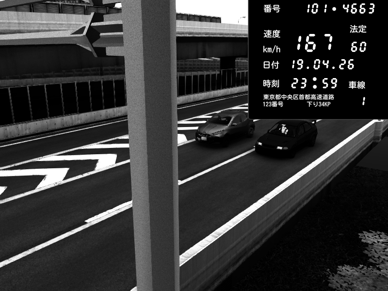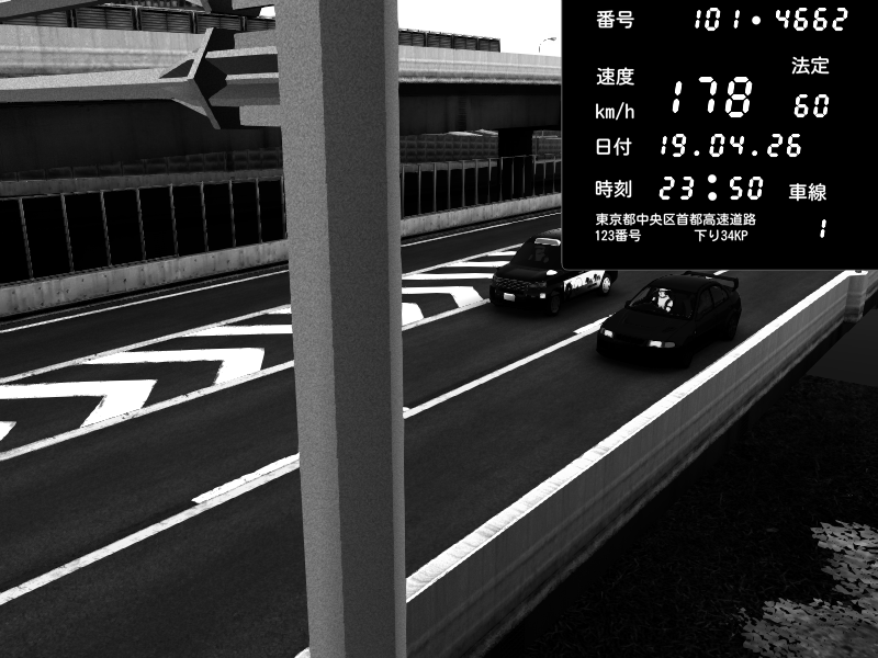 | 2026/04/20 00:01 | 4号下り 代々木 | 103 / 60 km/h | Mitsubishi Lancer Evolution V Wangan Spec | CAPTURE |