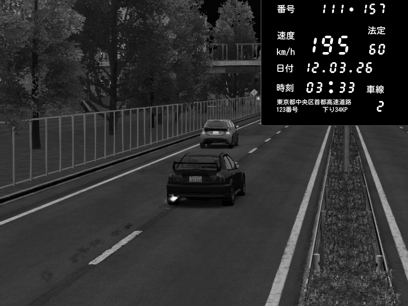 | 2026/03/12 03:33 | 1号下り 平和島 | 195 / 60 km/h | Mitsubishi Lancer Evolution V Wangan Spec | CAPTURE |