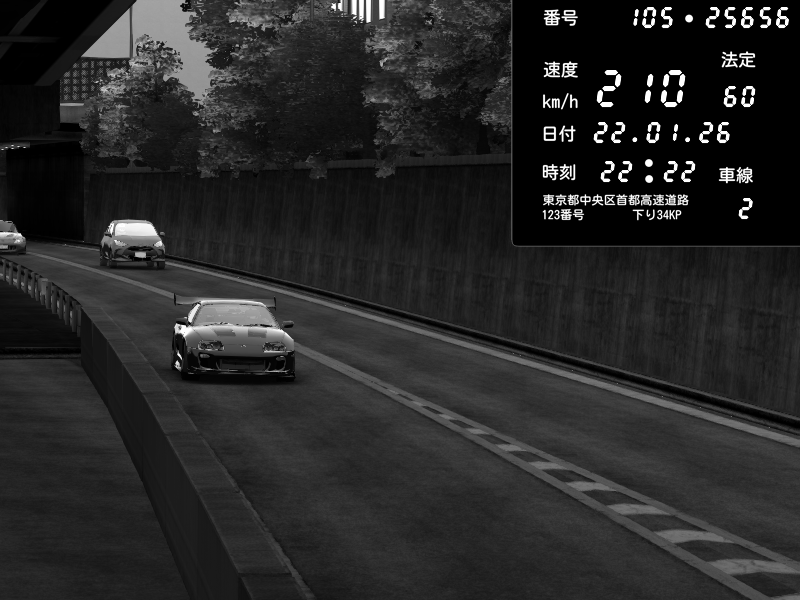 | 2026/01/22 22:22 | C1外回り 京橋 | 210 / 60 km/h | Toyota Supra MKIV Time Attack | CAPTURE |