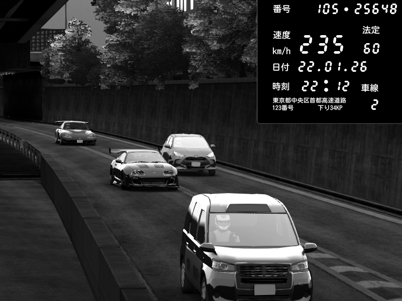 | 2026/01/22 22:12 | C1外回り 京橋 | 235 / 60 km/h | Toyota Supra MKIV Time Attack | CAPTURE |