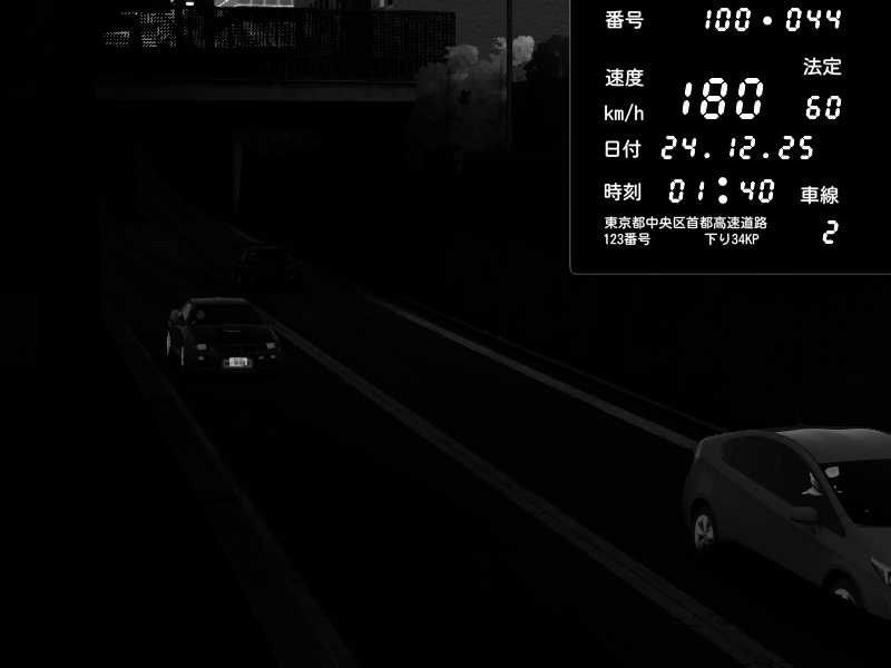 | 2025/12/24 01:40 | C1内回り 京橋 | 180 / 60 km/h | Nissan Skyline GT-R R34 Nismo Omori Factory S1 | CAPTURE |