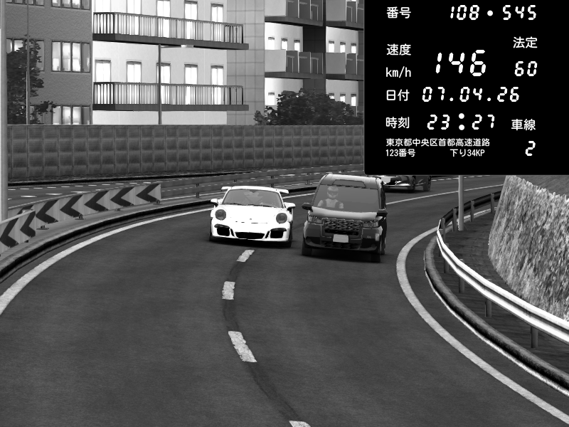 | 2026/04/07 23:25 | C1内回り 竹橋JCT | 214 / 60 km/h | Porsche 911 GT3 RS | CAPTURE |