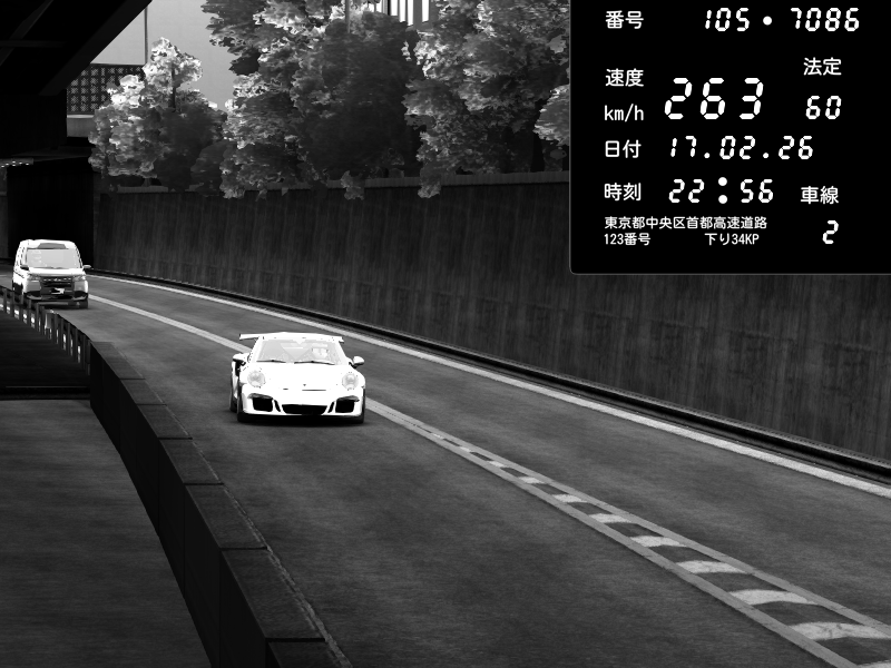 | 2026/02/17 22:56 | C1外回り 京橋 | 263 / 60 km/h | Porsche 911 GT3 RS | CAPTURE |