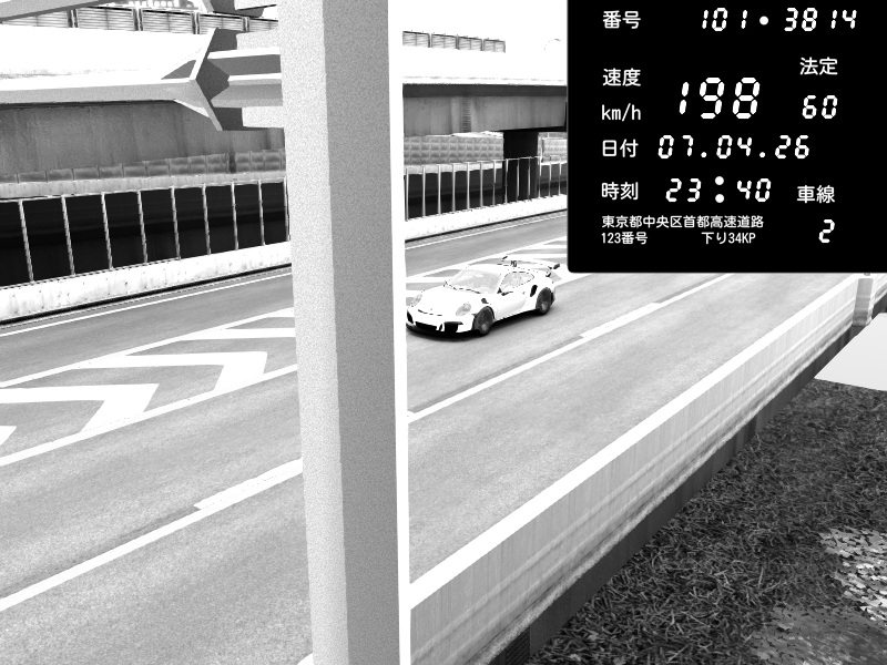 | 2026/04/07 23:40 | C1内回り 竹橋JCT | 198 / 60 km/h | Porsche 911 GT3 RS | CAPTURE |