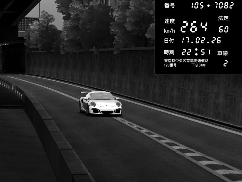 | 2026/02/17 22:51 | C1外回り 京橋 | 264 / 60 km/h | Porsche 911 GT3 RS | CAPTURE |