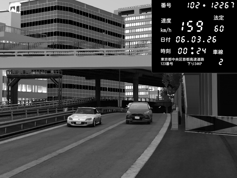 | 2026/03/06 00:24 | C1外回り 新富町 | 159 / 60 km/h | Honda S2000 (AP2 - Legendary) | CAPTURE |
