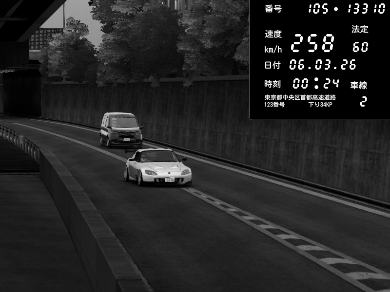 | 2026/03/06 00:24 | C1外回り 京橋 | 258 / 60 km/h | Honda S2000 (AP2 - Legendary) | CAPTURE |