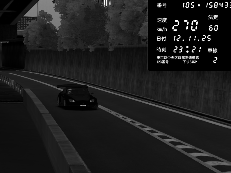 | 2025/11/12 23:21 | C1外回り 京橋 | 270 / 60 km/h | Honda S2000 Turbo GT1 Amuse (AP1) | CAPTURE |