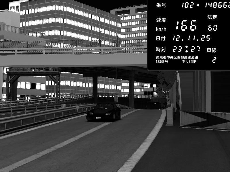 | 2025/11/12 23:27 | C1外回り 新富町 | 166 / 60 km/h | Honda S2000 Turbo GT1 Amuse (AP1) | CAPTURE |