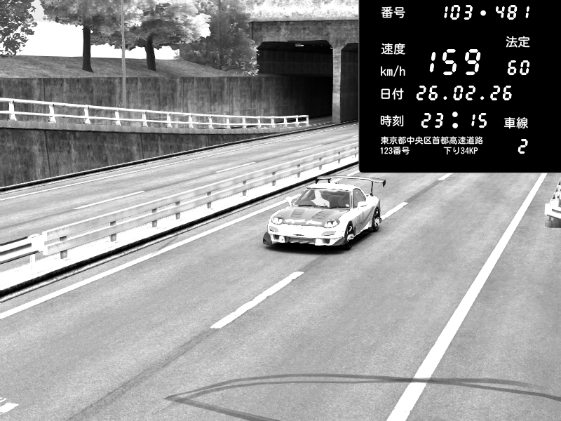 | 2026/02/26 23:03 | C1内回り 銀座 | 188 / 60 km/h | Mazda RX-7 FD3S RE Amemiya | CAPTURE |