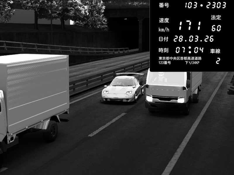 | 2026/03/28 07:04 | C1内回り 銀座 | 171 / 60 km/h | Mazda RX-7 FD3S RE Amemiya | CAPTURE |
