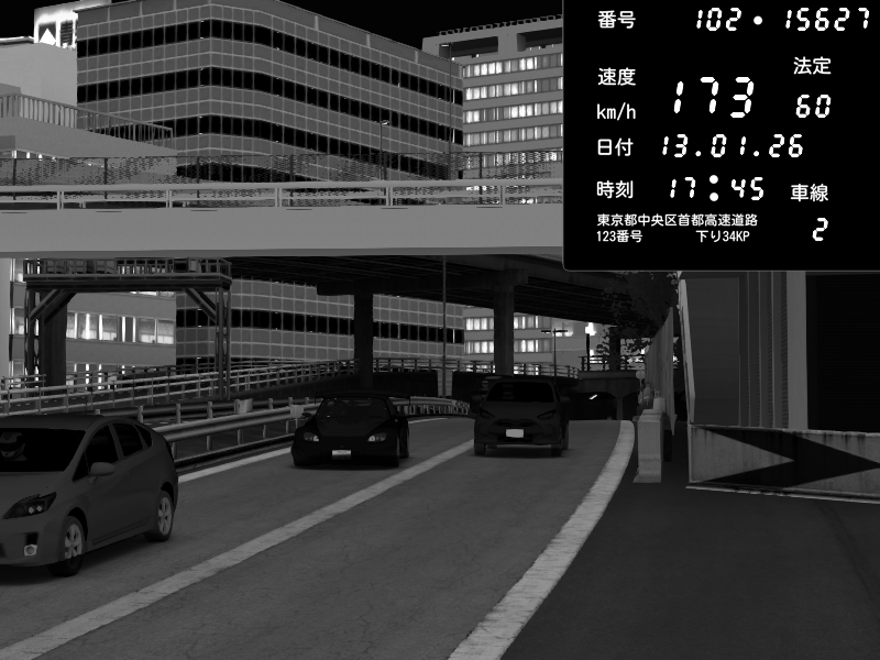 | 2026/01/13 17:45 | C1外回り 新富町 | 173 / 60 km/h | Honda S2000 Turbo GT1 Amuse (AP1) | CAPTURE |