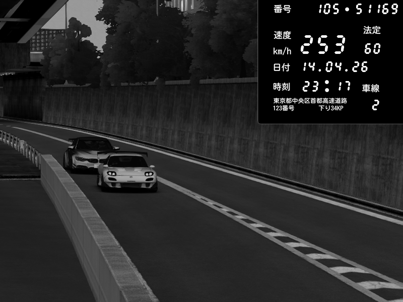| 2026/04/14 23:17 | C1外回り 京橋 | 253 / 60 km/h | Mazda RX-7 FD3S RE Amemiya | CAPTURE |