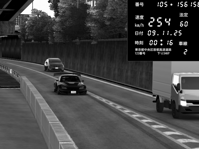 | 2025/11/09 00:25 | C1外回り 新富町 | 187 / 60 km/h | Honda S2000 Turbo GT1 Amuse (AP1) | CAPTURE |