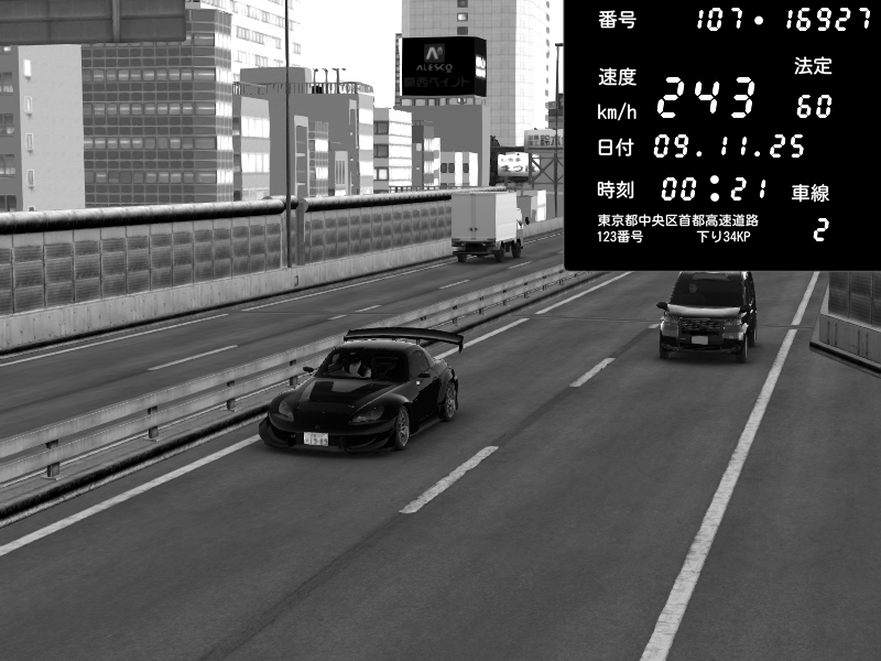 | 2025/11/09 00:16 | C1外回り 京橋 | 254 / 60 km/h | Honda S2000 Turbo GT1 Amuse (AP1) | CAPTURE |