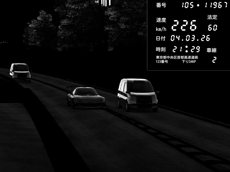 | 2026/03/04 21:30 | C1ε€εγ δΊ¬ζ© | 226 / 60 km/h | Mazda RX-7 FD3S FEED Afflux GT3 | CAPTURE |