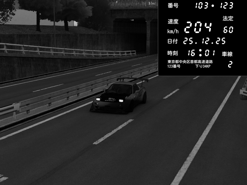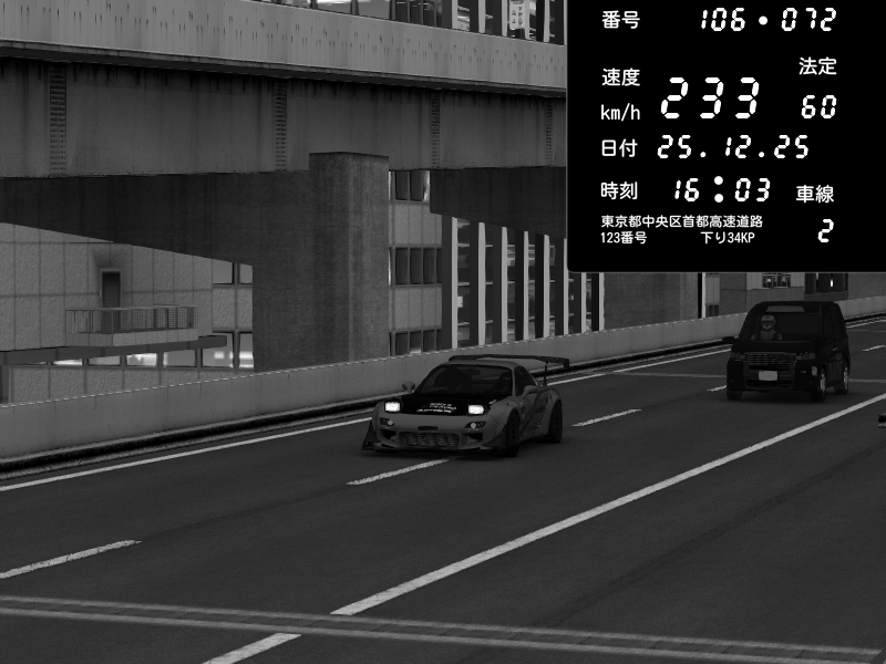 | 2025/12/25 16:02 | C1内回り 京橋 | 185 / 60 km/h | Mazda RX-7 FD3S FEED Afflux GT3 | CAPTURE |