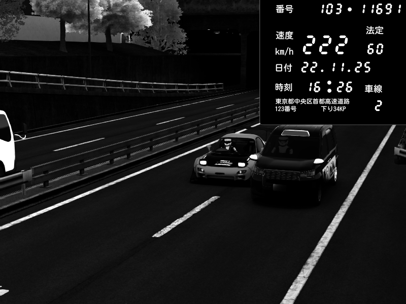 | 2025/11/22 16:27 | C1内回り 京橋 | 133 / 60 km/h | Mazda RX-7 FD3S FEED Afflux GT3 | CAPTURE |