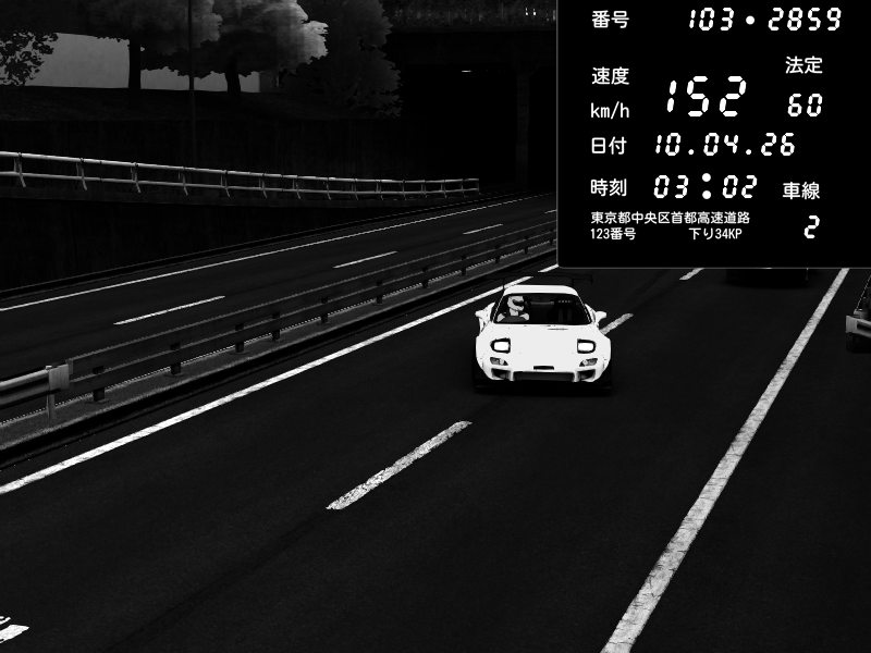 | 2026/04/10 03:02 | C1内回り 銀座 | 152 / 60 km/h | Mazda RX-7 FD3S FEED Afflux GT3 | CAPTURE |