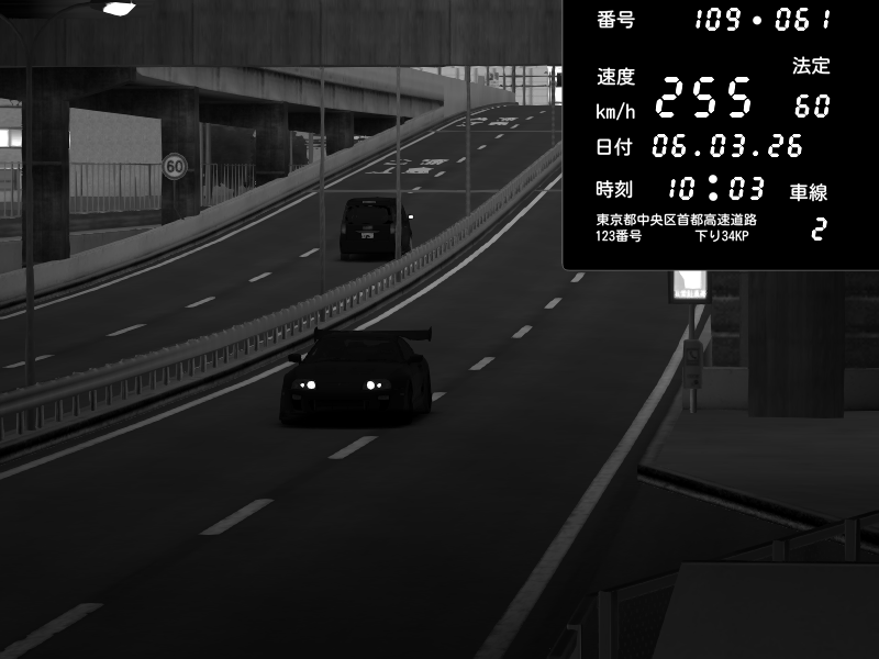 | 2026/03/06 09:43 | C1内回り 竹橋JCT | 174 / 60 km/h | Toyota Supra MKIV Time Attack | CAPTURE |