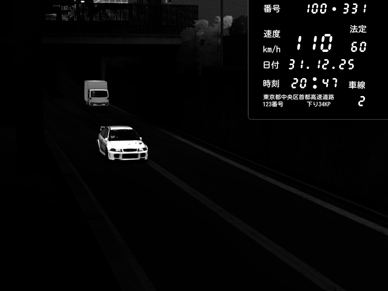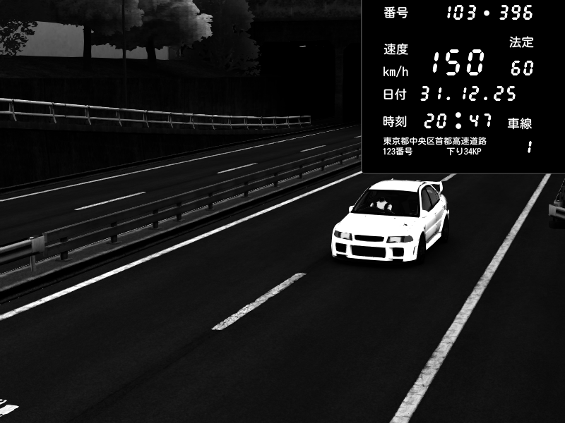 | 2025/12/31 20:47 | C1内回り 銀座 | 150 / 60 km/h | Mitsubishi Lancer Evolution V Wangan Spec | CAPTURE |