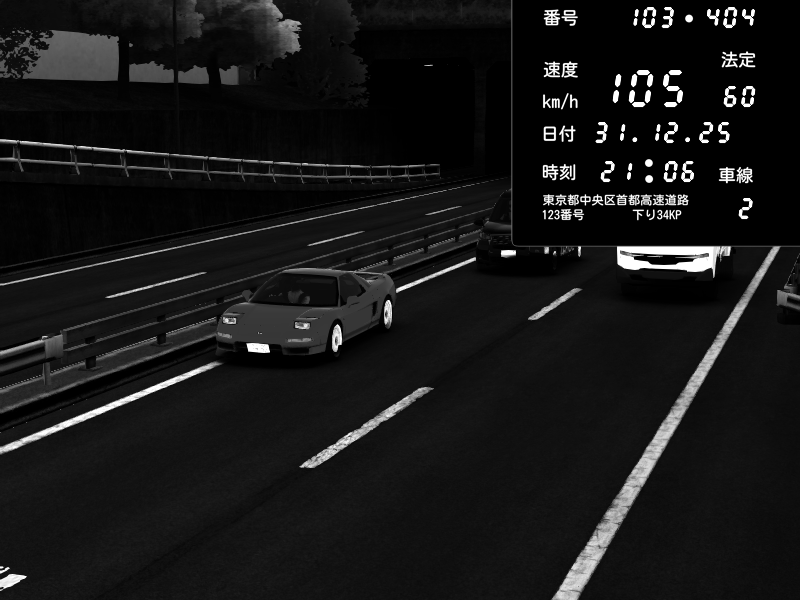 | 2025/12/31 21:06 | C1内回り 銀座 | 105 / 60 km/h | Honda NSX [NA1] PVLSX | CAPTURE |