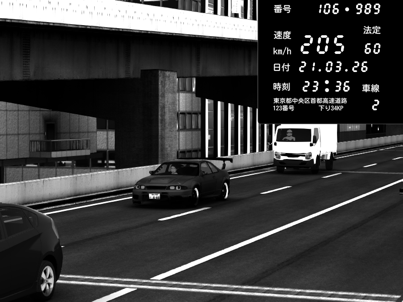 | 2026/03/21 23:36 | 9号下り 木場 | 205 / 60 km/h | Nissan Skyline GTR R33 (S3 - Wangan) | CAPTURE |