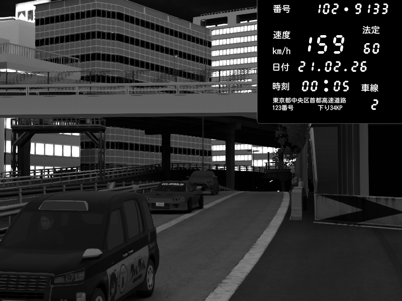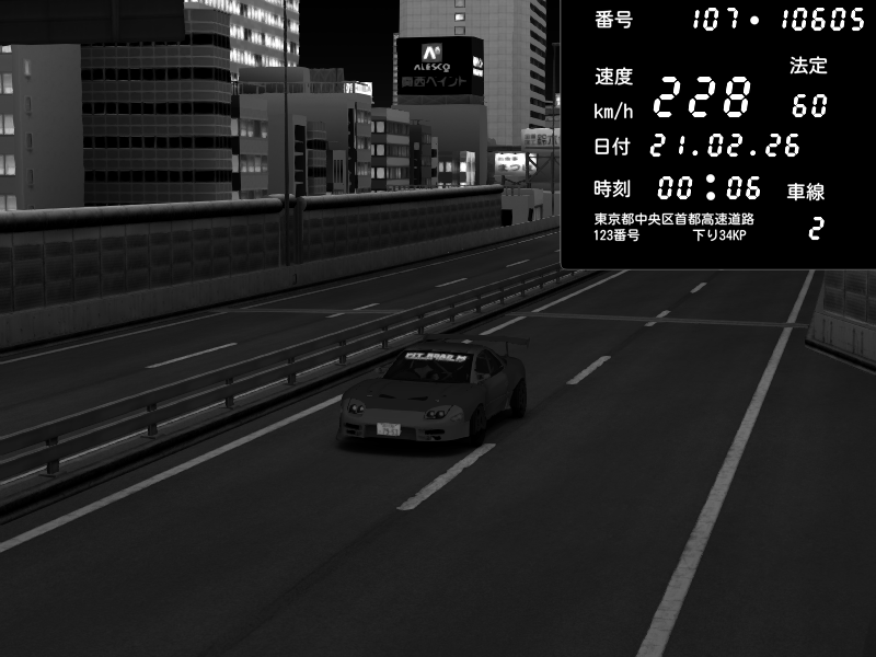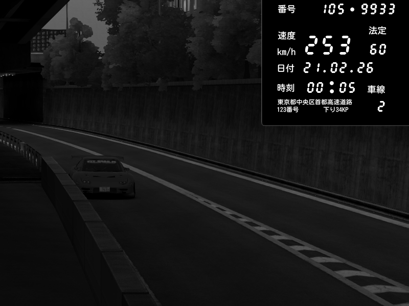 | 2026/02/21 00:05 | C1外回り 京橋 | 253 / 60 km/h | Pit Road M - Mitsubishi GTO Twin Turbo | CAPTURE |