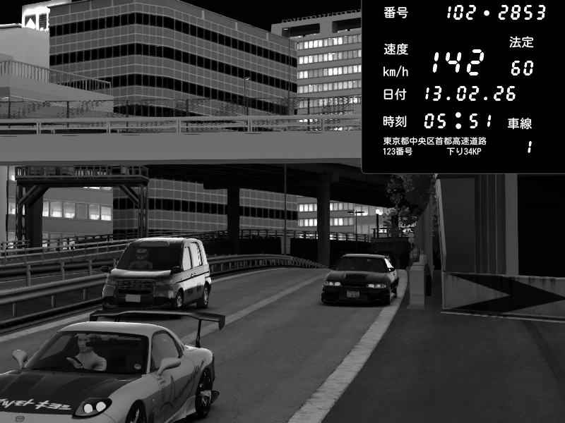 | 2026/02/13 05:51 | C1外回り 新富町 | 142 / 60 km/h | Nissan Skyline GTR R33 (S3 - Wangan) | CAPTURE |