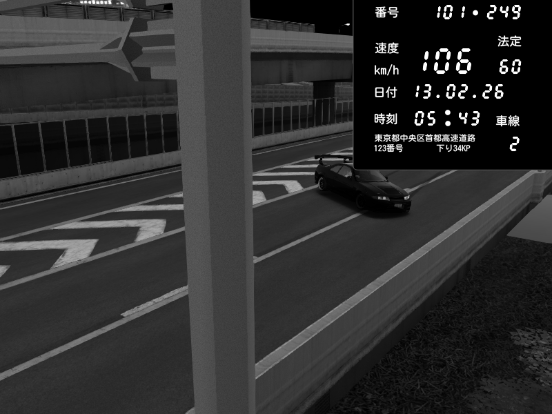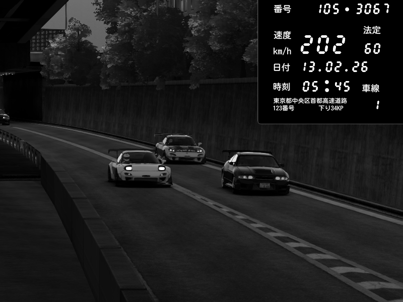 | 2026/02/13 05:43 | C1内回り 竹橋JCT | 106 / 60 km/h | Nissan Skyline GTR R33 (S3 - Wangan) | CAPTURE |