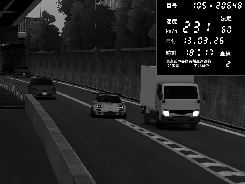| 2026/03/13 18:17 | C1外回り 京橋 | 231 / 60 km/h | Mazda RX-7 FD3S RE Amemiya | CAPTURE |