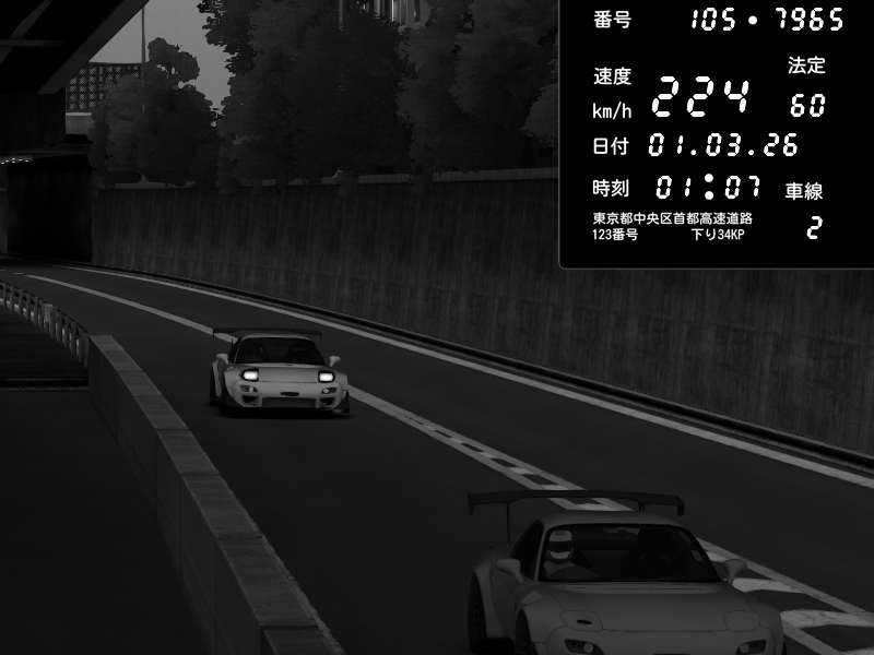| 2026/03/01 01:13 | C1外回り 京橋 | 270 / 60 km/h | Mazda RX-7 FD3S FEED Afflux GT3 | CAPTURE |