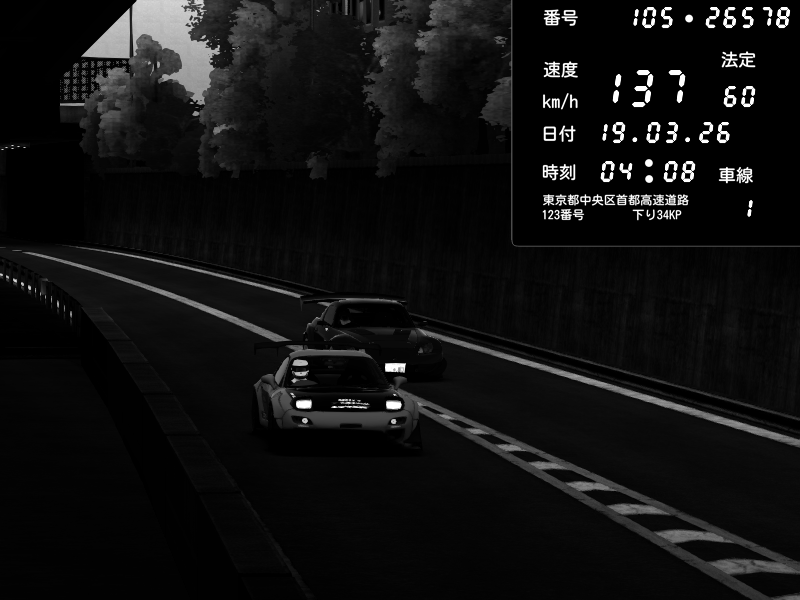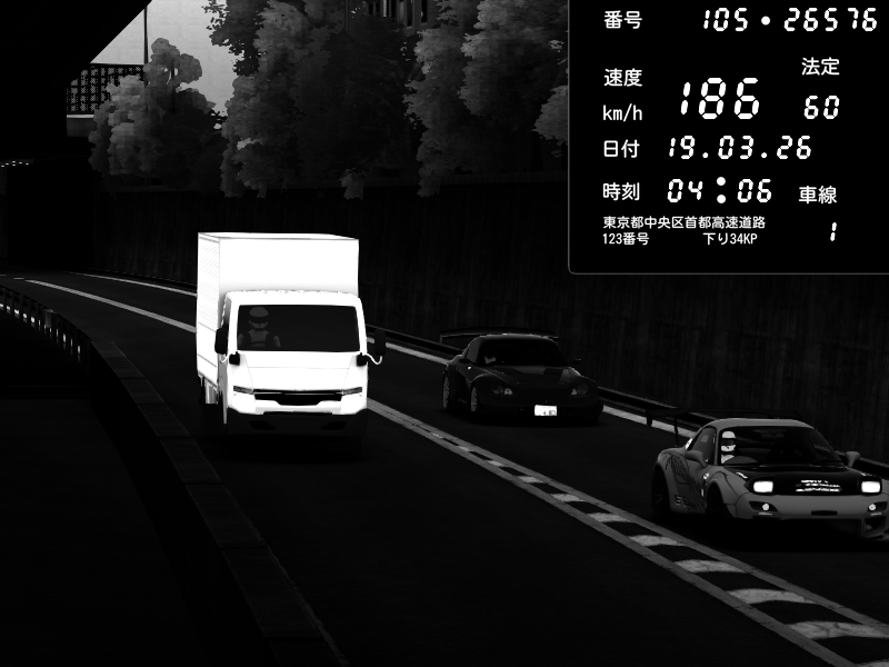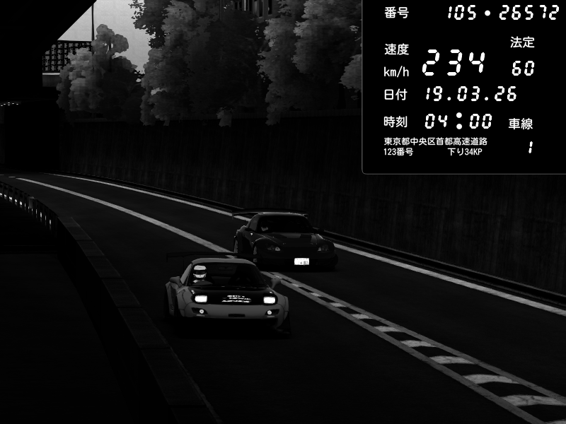 | 2026/03/19 03:54 | C1外回り 芝公園 | 244 / 60 km/h | Honda S2000 Turbo GT1 Amuse (AP1) | CAPTURE |