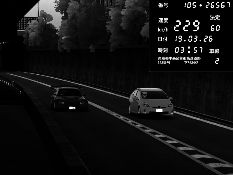 | 2026/03/19 04:00 | C1外回り 京橋 | 234 / 60 km/h | Honda S2000 Turbo GT1 Amuse (AP1) | CAPTURE |