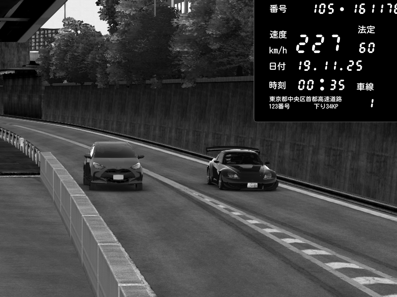 | 2025/11/19 00:35 | C1外回り 京橋 | 227 / 60 km/h | Honda S2000 Turbo GT1 Amuse (AP1) | CAPTURE |