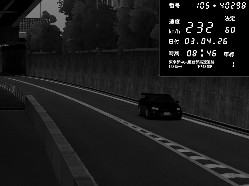 | 2026/04/03 08:40 | C1外回り 新富町 | 146 / 60 km/h | Nissan Skyline GT-R R34 Nismo Omori Factory S1 | CAPTURE |