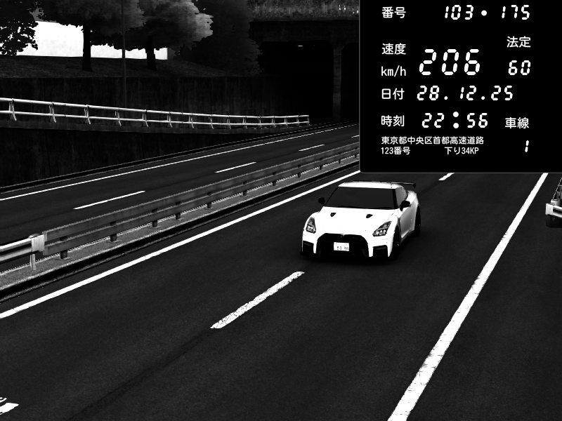 | 2025/12/28 22:47 | C1内回り 銀座 | 170 / 60 km/h | Nissan GT-R NISMO 2017 | CAPTURE |