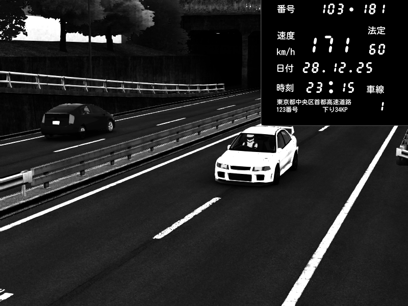 | 2025/12/28 23:30 | 4号下り 代々木 | 147 / 60 km/h | Mitsubishi Lancer Evolution V Wangan Spec | CAPTURE |